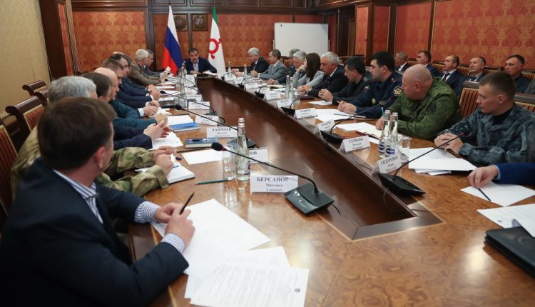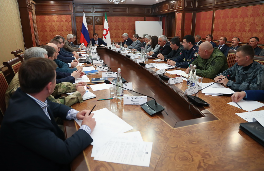В Малом зале Администрации Главы РИ состоялось заседание Постоянно действующего координационного совещания по обеспечению правопорядка в республике. Встреча прошла под председательством Главы Ингушетии Юнус-Бека Евкурова и с участием членов координационного совещания, глав администраций городов и районов республики, заместителя Председателя правительства Пятимат Аушевой. В обсуждении важной для региона темы принял участие глава города Назрань Алихан Тумгоев.