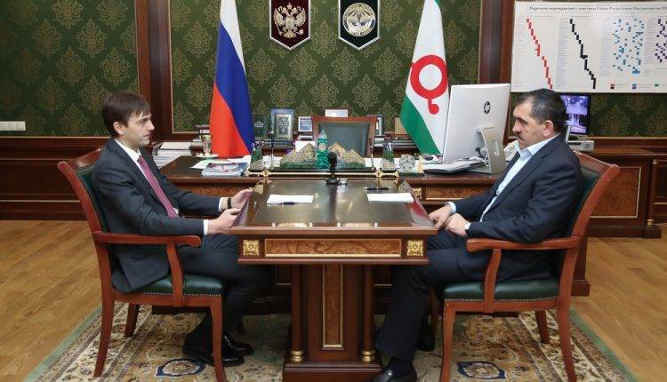 Сегодня в Магасе прошла протокольная встреча Юнус-Бека Евкурова с заместителем Министра образования и науки России Сергеем Кравцовым, в рамках которой обсуждались вопросы развития и модернизации системы образования республики.