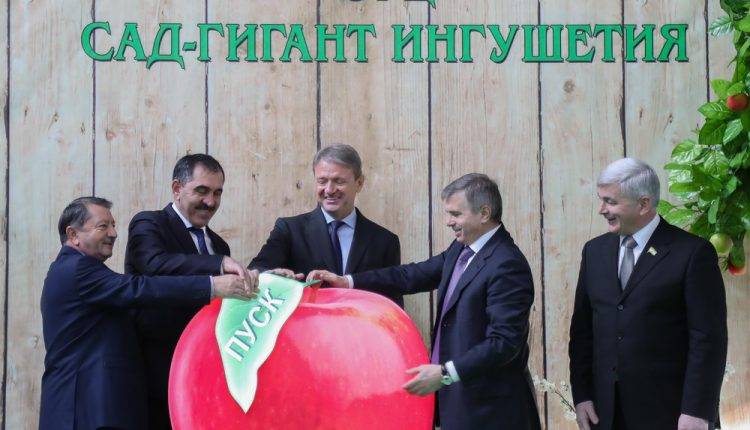 Инвестиционный проект, осуществляемый ООО «Сад-Гигант Ингушетия» в Ингушетии, предусматривает, начиная с 2014года, строительство фруктового сада на площади 1000 гектаров с оптово-распределительным центром на 50 тысяч тонн единовременного хранения. Центр на круглогодичной основе будет обеспечивать население страны свежими фруктами и овощами. Планируется, что урожайность Сада-гиганта составит до 55 тонн яблок с гектара. Проект имеет важное значение по обеспечению программы Правительства РФ по импортозамещению.