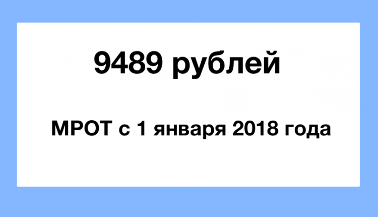 Минимальный размер оплаты труда (МРОТ) с 1 января 2018 г. составит 9489 руб. — 85% от прожиточного минимума. Соответствующий законопроект подготовил Минтруд России, передает ТАСС.