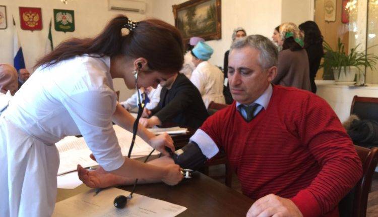 В Администрации города Назрань сегодня прошёл первый день диспансеризации. Её участниками стали сотрудники мэрии. Медицинские работники республиканской поликлиники провели очередное плановое обследование в рамках диспансеризации населения. Целью данного обследования было выявление на ранних стадиях сердечно-сосудистых заболеваний, сахарного диабета, артериальной гипертонии и других заболеваний. Коллектив администрации заранее был оповещен о запланированных мероприятиях и о том, что необходимо сдавать анализы натощак.