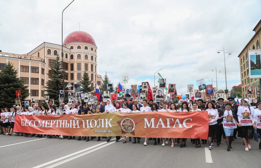 Порядка 15 тысяч жителей Ингушетии, в том числе Глава региона Юнус-Бек Евкуров, приняли участие в шествии «Бессмертный полк» в Магасе. Руководитель республики присоединился к акции на проспекте Зязикова и вместе с колонной прошел до площади «Алания». В руках Глава Ингушетии нес портрет своего дяди-фронтовика, известного кавалериста Ахмеда Исиевича Евкурова, участвовавшего в трех сражениях и погибшего под Севастополем.