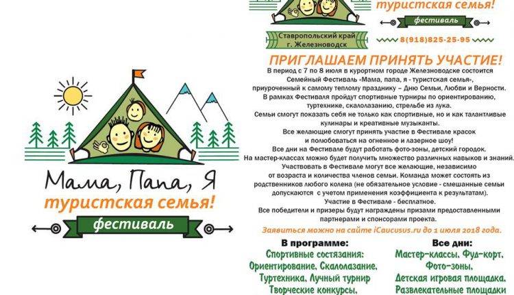 Участвовать в фестивале «Мама, папа, я — туристская семья» могут все желающие, независимо от возраста и количества членов семьи. В период с 7 по 8 июля в курортном городе Железноводске состоится семейный фестиваль «Мама, папа, я — туристская семья», приуроченный к самому теплому празднику — Дню семьи, любви и верности. Организатором мероприятия выступил центр проектных инициатив «Данко» совместно с Фондом президентских грантов. В рамках фестиваля пройдут спортивные турниры по ориентированию, туртехнике, скалолазанию, стрельбе из лука. Семьи смогут показать себя не только как спортивные, но и как талантливые кулинары (в один из дней пройдет конкурс «Турзавтрак») и креативные музыканты. Все желающие смогут полюбоваться на ночное свечение аэростатов различных форм и так полюбившийся всем шар-сердце, а также подняться на рассвете в воздух и полюбоваться окрестностями с высоты птичьего полета. Все дни на фестивале будут работать фотозоны, детский городок. На мастер-классах можно будет получить множество различных навыков и знаний. Победители и призеры будут награждены призами, предоставленными партнерами и спонсорами проекта. Отправить заявку на участие можно уже сейчас на сайте icaucasus. ru.