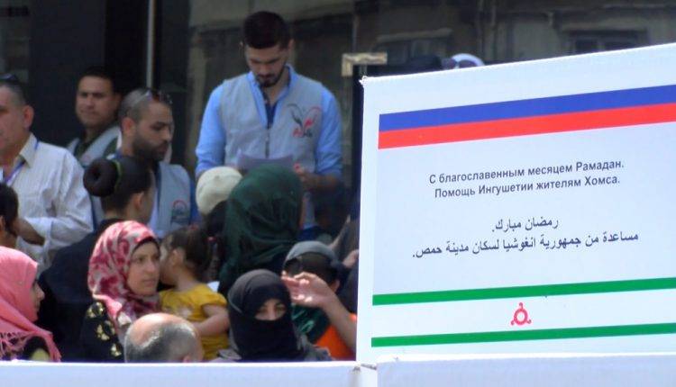 Республика Ингушетия по поручению Главы региона Юнус-Бека Евкурова провела сегодня в сирийском Хомсе масштабную гуманитарную акцию по случаю окончания священного месяца Рамадан и приближения праздника Ураза-байрам. Это седьмая гуманитарная акция, которую Ингушетия организовала для братского сирийского народа.«В акции под названием «С Благословенным месяцем Рамадан. Помощь Ингушетии жителям Хомса» приняли участие бойцы российского батальона военной полиции из Ингушетии. Мы раздали семьям тех, кто остался без кормильца из-за военных действий, продуктовые наборы. В общей сложности было роздано 18 тонн помощи», — сказал помощник-советник Главы РИ Луай Юсеф, представлявший на акции ингушскую сторону.