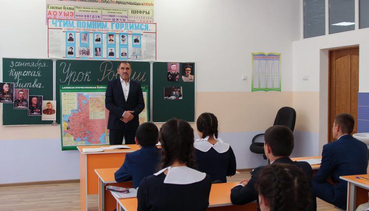Ю. Евкуров провел «Урок России» в новой школе Гамурзиевского административного округа г. Назрани