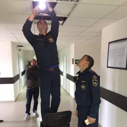 Специалисты МЧС с помощью специального оборудования поверили автоматическую противопожарную защиту лечебного учреждения, оснащение первичными средствами пожаротушения, противопожарное водоснабжение и запасные пути эвакуации из здания в случае пожара.