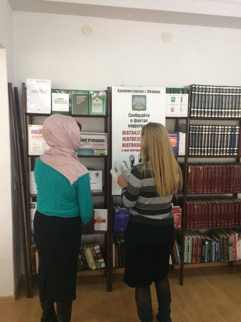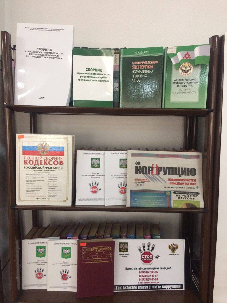 5 декабря в Центральной библиотеке г. Назрань состоялась тематическая информационно-познавательная книжная выставка «Коррупция-зло!». Основной целью мероприятия является пропаганда и формирование у населения антикоррупционного мировоззрения. Участники мероприятия проявляли свою активность в обсуждении темы, задавая вопросы, высказывая свою точку зрения, были розданы памятки для населения по вопросам противодействия коррупции.