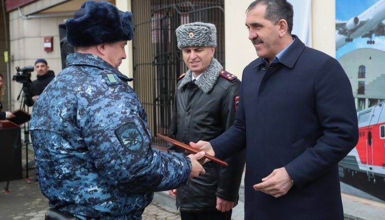 Ю. Евкуров также вручил почетные грамоты сотрудникам Назрановского ЛО МВД России на транспорте, отличившихся образцовым исполнением служебных обязанностей.