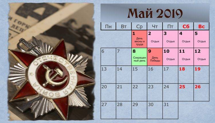 На предстоящей неделе рабочими будут 6, 7, 8 мая, выходные — с 9 по 12 мая включительно, — рассказали в ведомстве.