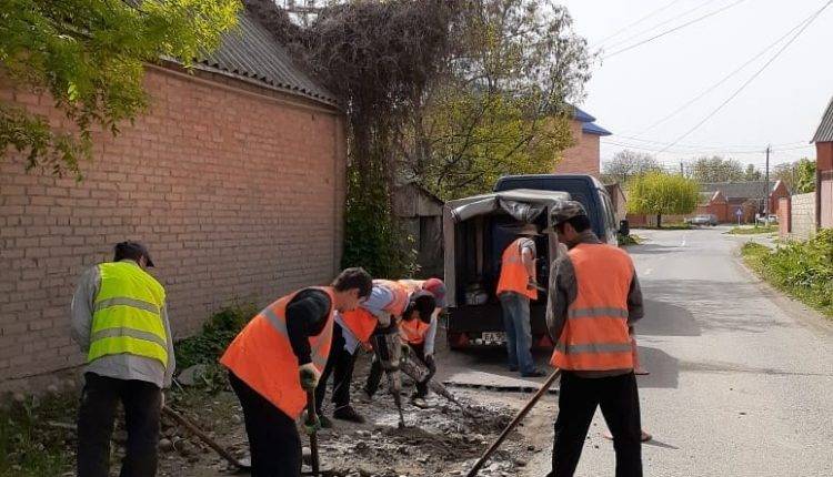 На участке автомобильной дороги «Гамурзиево-Насыр-Корт» ведутся работы по устройству ямочного ремонта.
