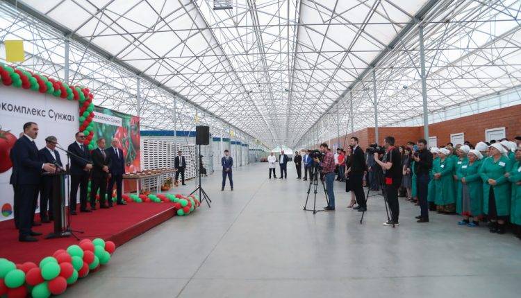 Первый этап агрокомплекса «Сунжа» по производству овощей закрытого грунта открыли в Ингушетии. В церемонии официального запуска предприятия приняли участие Министр РФ по делам Северного Кавказа Сергей Чеботарев и Глава Ингушетии Юнус-Бек Евкуров.