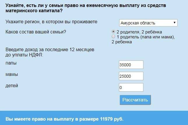 Узнать о праве на ежемесячную выплату с помощью семейного калькулятора