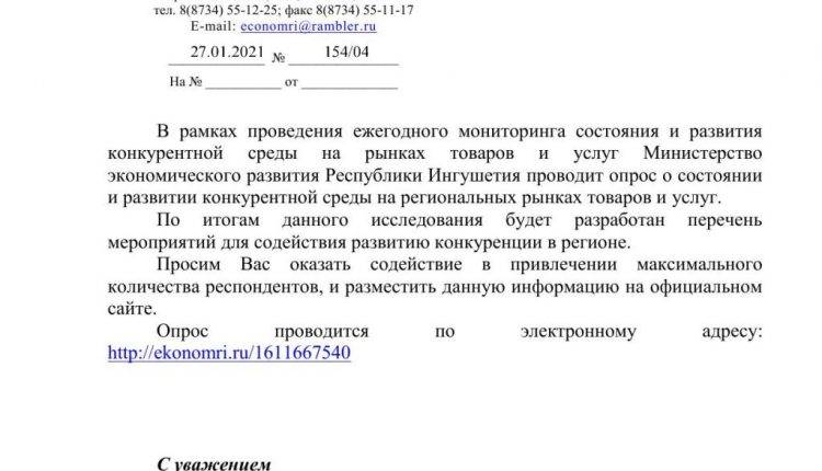 Новости Ежегодный мониторинг состояния и развития конкурентной среды на рынках товаров и услуг Министерство экономического развития РИ От redactor В Янв 28, 2021 0 897 Поделиться 0 897 Поделиться WhatsAppЭл. адресTelegramVKPrint