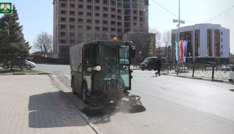 Сегодня в Назрани весь день велись работы по уборке города — остановочные павильоны, тротуарная плитка, дороги — все это чистилось с помощью специализированной техники.