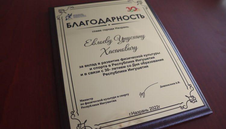 Благодарность главе Назрани за вклад и развитие спорта в РИ