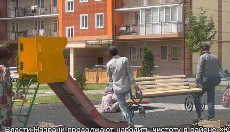А в Назрани продолжается уборка придомовых территорий и городских пространств