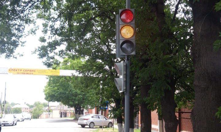 В связи с увеличением потока машин на дорогах города и, в частности, на ул. Суворова в Гамурзиево возле школы №-9 Назрани проведены работы по установке светофора.